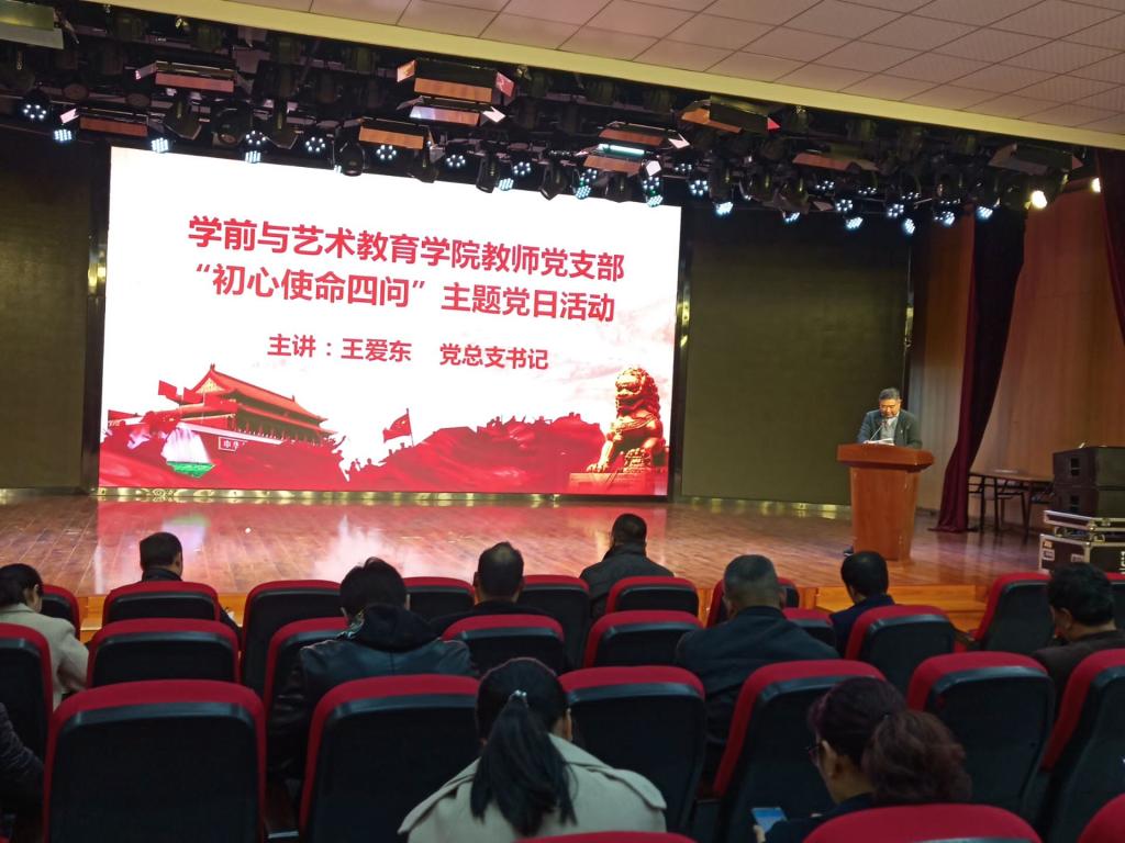 2019年11月18日下午,贝博官网教师党支部在学院一楼演播厅组织开展“初心使命四问”主题党日活动。会议由党总支书记王爱东主持,全体教师党支部成员参加了本次活动。