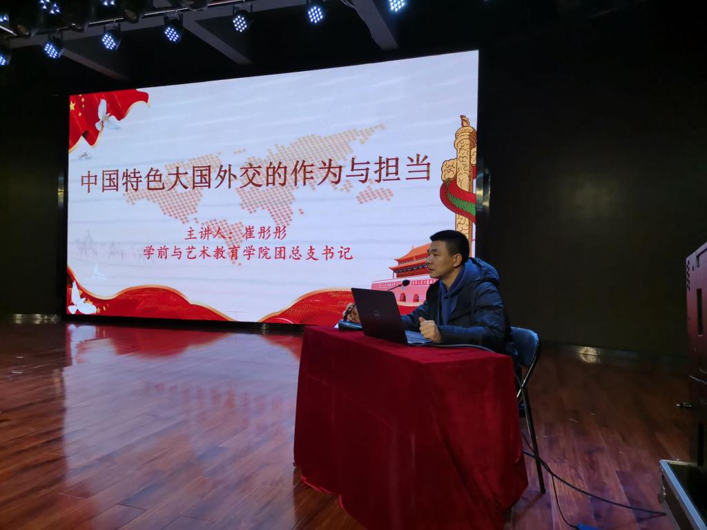为加强对广大青年团员的意识形态教育,增强中华民族自豪感,拓宽视野,12月10日晚7点,ballBET贝博BB艾弗森团总支在学院一楼演播厅开展“中国特色大国外交的作为与担当”主题团课,此次团课由团总支书记崔彤彤主讲,100余名团员聆听了团课。