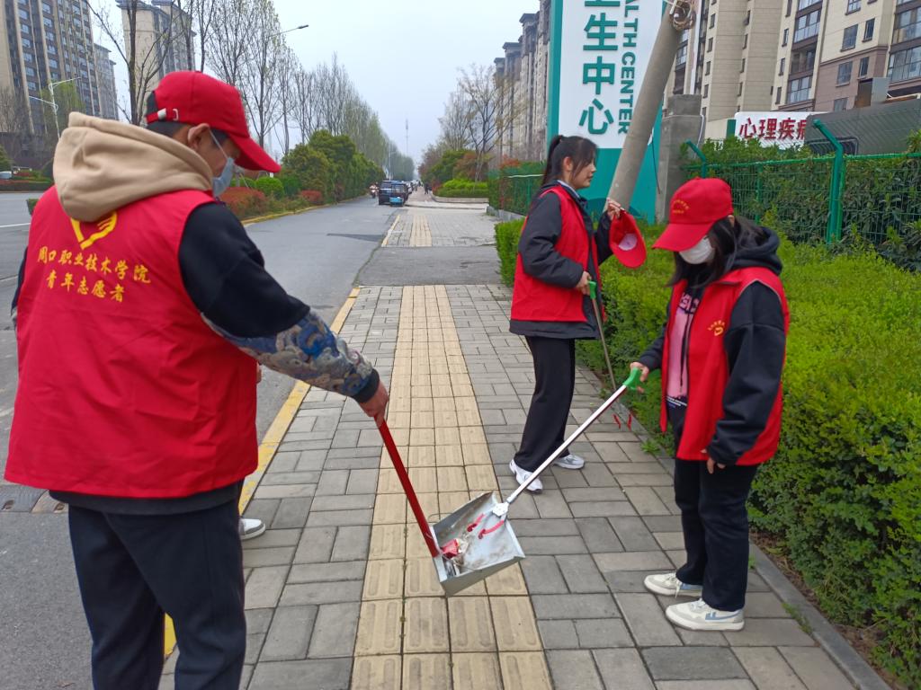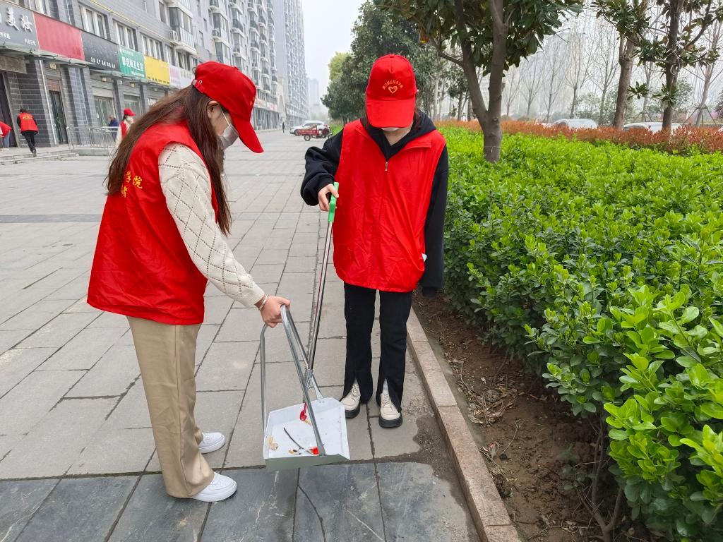 最后,党员发展对象们前往许寨社区开展“学习雷锋精神”志愿服务活动。3月20日,党员发展对象志愿者们身穿红马甲,分成若干小组,坚持“发现一处、清理一处”的原则,使用扫帚、夹钳等工具对许寨社区内外分包路段中的落叶、枯枝、塑料袋、烟头等垃圾杂物进行全面清理,帮助社区改善居住环境。同时在学校附近各交叉路口协助交警开展文明交通疏导活动,积极发挥自己的奉献精神,以实际行动弘扬助人为乐、无私奉献的雷锋精神,争做为人民服务的时代先锋。