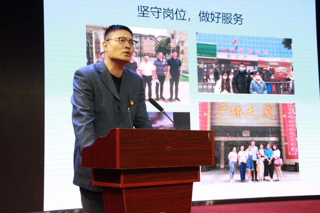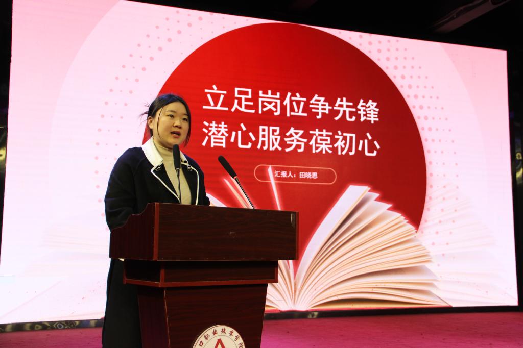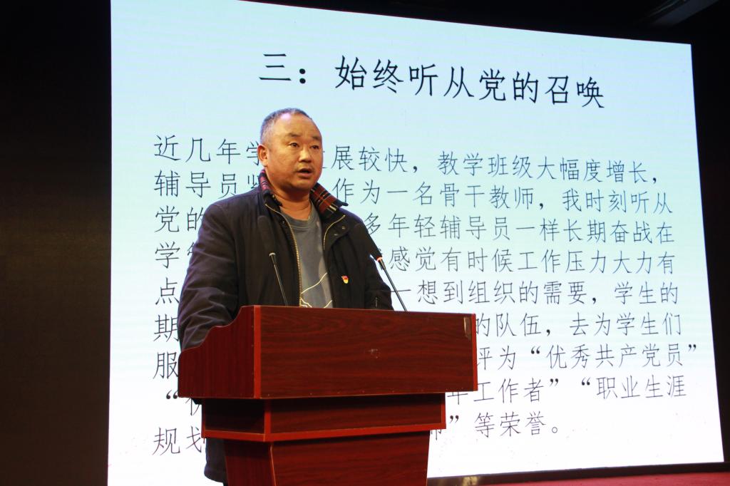 党员管理示范岗杨晨老师对个人事迹进行汇报,“坚守岗位,做好服务;转变角色,以身示范;努力学习,不断提高。”在报告的最后他引用“其身正,不令而行,其身不正,虽令不从”来鞭策自己。
