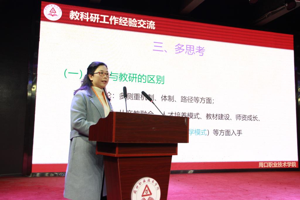 党员教学示范岗李晨阳老师以“五个一”向大家分享自己的心得体会,建议教师们积极参加教育教学能力大赛,希望打造出高质量的教学环境。