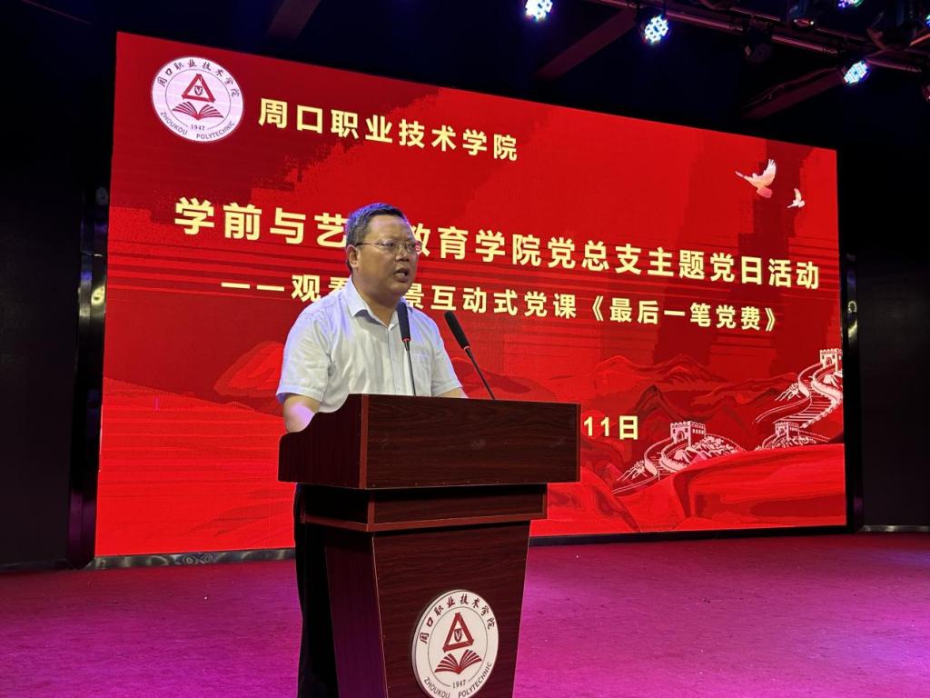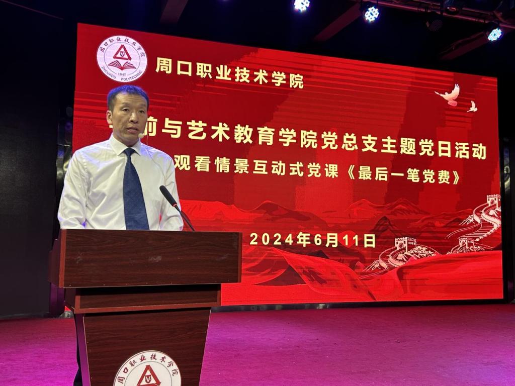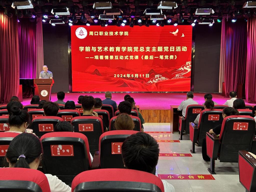 为充分发挥先进典型示范引领作用,教育引导全体师生坚定理想信念,6月11日上午,ballBET贝博BB艾弗森党总支在艺术演播厅开展主题党日活动,ballBET贝博BB艾弗森校党委副书记李明臣、副校长王隼、宣传部部长万四新、组织部部长张丹出席现场,ballBET贝博BB艾弗森领导班子、全体教师、党员发展对象、入党积极分子及戏曲专业全体学生参加活动。在座人员一同观看了情景互动式党课《最后一笔党费》。活动由院长高岐奎主持。