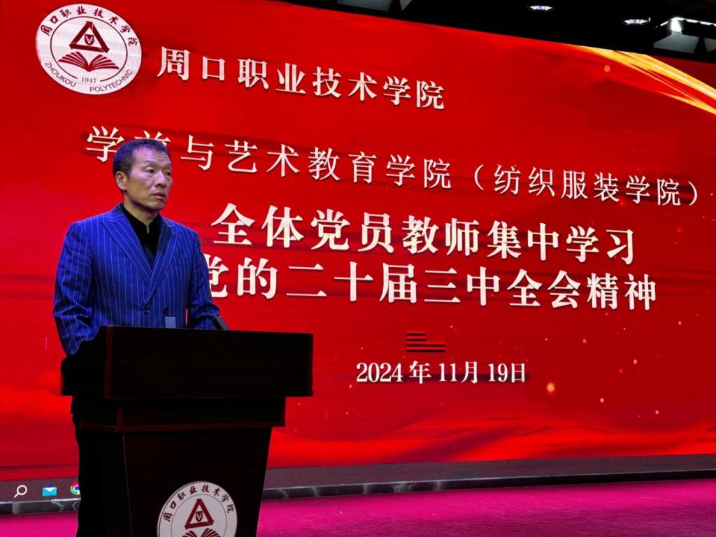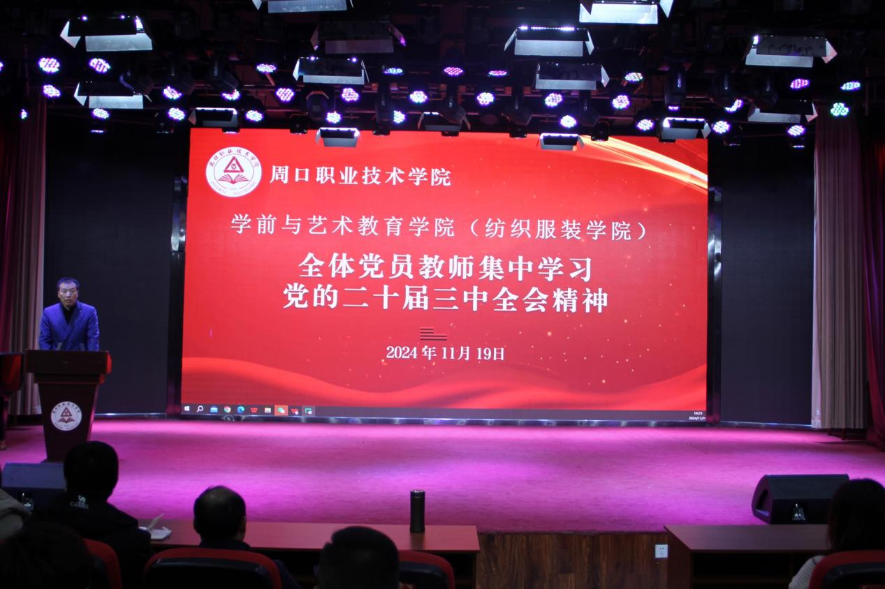 11月19日,ballBET贝博BB艾弗森(纺织服装学院)组织全体党员教师在艺术演播厅集中学习党的二十届三中全会精神。