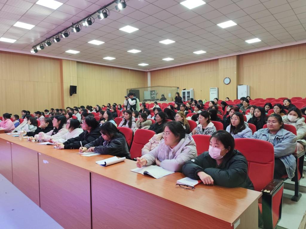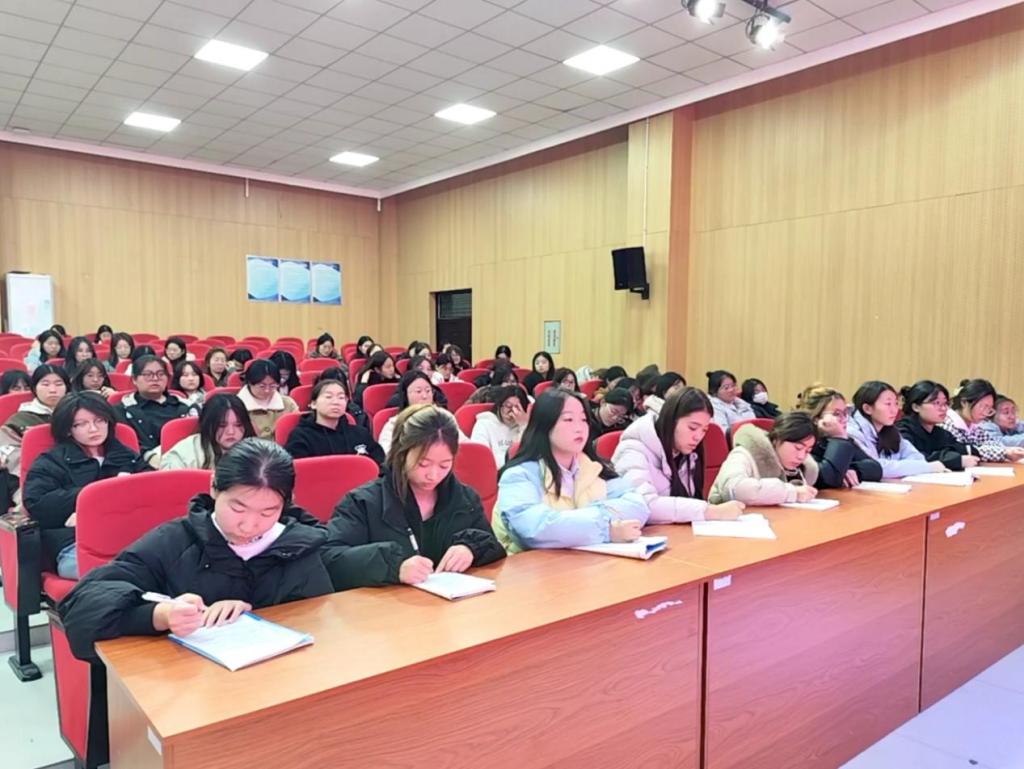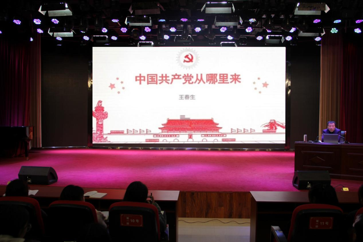 11月18日晚,学院在艺术演播厅开展专题党课学习,党总支书记王春生主讲,127名入党积极分子聆听。
