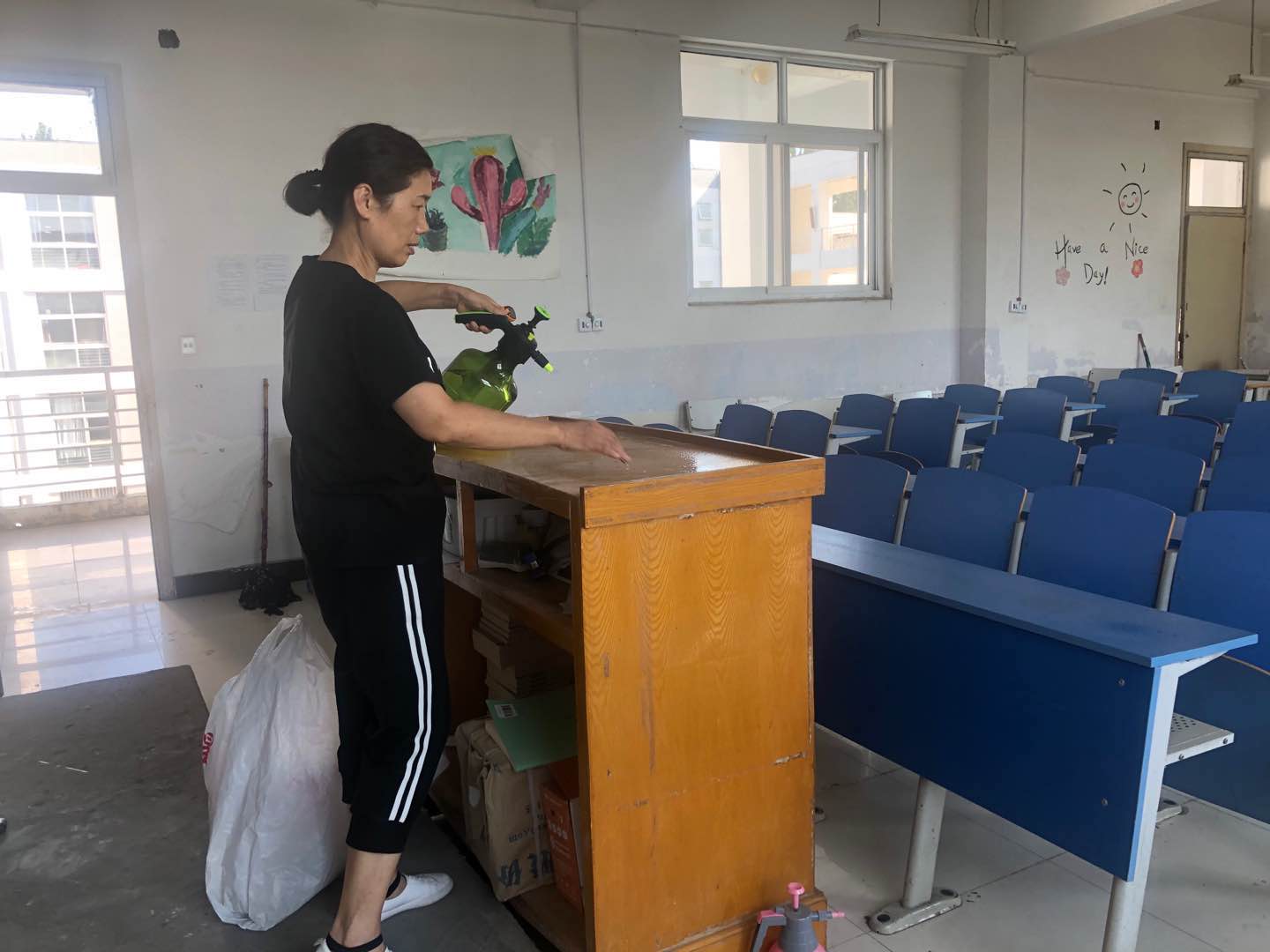 上午9时,全体教工在一楼多功能演播厅集合,院长穆向阳对卫生清洁打扫工作进行了细致安排和培训指导,向大家详细讲解了打扫过程中的注意事项。随后,全体教师们拿起脸盆、毛巾、拖把等劳动工具,在院领导班子的带领下进入各个教室、琴房、实训室、舞蹈房打扫卫生。全体教师不顾脏、不怕苦、不喊累。除尘、扫地、擦拭窗台、墙面、桌凳、拖地等。经过一上午的打扫,干净整洁、温馨和谐、宽敞明亮的教室、琴房、实训室、舞蹈教室展现在大家面前。