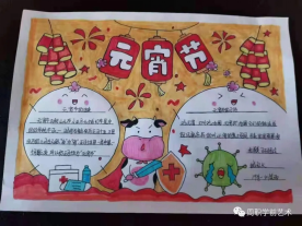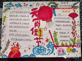 同学们积极参与,围绕元宵节文化内涵,通过收集元宵节的由来、风俗习惯等内容,精心设计了一幅幅内容丰富、色彩艳丽、设计美观的作品,展示了自己的节日感悟。