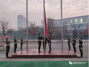 6点40分,升国旗仪式正式开始。旗手们精神抖擞,迈着矫健的步伐走上升旗台。在雄壮激昂的国歌声中,鲜艳的五星红旗冉冉升起,全院师生满怀崇敬之情,同唱国歌,共抒家国情怀。