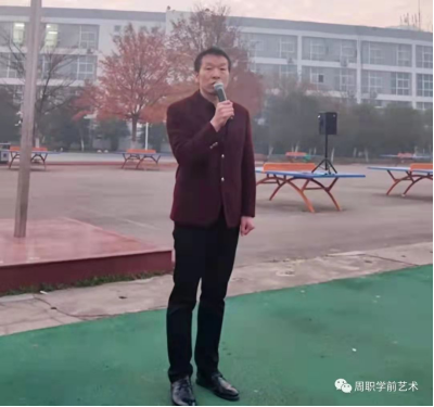 升旗仪式后,党总支书记王爱东在国旗下发表讲话。他指出今年是建校20周年,在校党委的正确领导下,全校师生意气风发朝着迁建升本的目标砥砺前行。他向同学们提出三点期望:一要胸怀祖国,志存高远;二要珍惜时光,制定好自我发展规划;三要勇于创新,敢于担当时代重任。