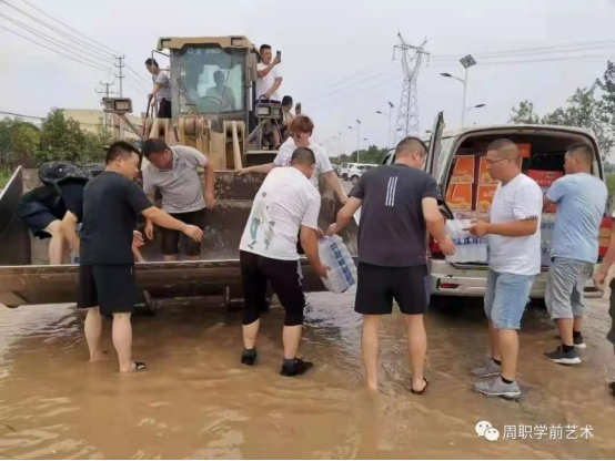 20级学前教育八班的张莹莹同学得知洪峰将要到达自己的家乡周口市西华县,她与家人第一时间奔赴商店购买60箱面包捐赠给在周口西华抗洪救援前线奋战的救援人员。物资安全送达后,张莹莹和家人就匆匆离开了现场,她尽自己所能为抗洪救援贡献力量。