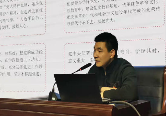 崔彤彤老师以“重温党史汲取信仰力量”为主题,围绕“中国共产党为什么“能”、马克思主义为什么“行”、中国特色社会主义为什么“好””三个方面展开,带领同学们系统回顾了党的百年奋斗历程,解读了中国共产党成立时的国际国内环境,尤其是在新冠疫情中以习近平同志为核心的党中央团结带领全国人民取得抗击疫情阶段性胜利的事实,阐述了在中国共产党的领导下,中华民族从站起来、富起来到强起来的伟大飞跃,创造了让世界惊叹的“中国奇迹”。他指出要全面把握党的历史,始终坚定党的历史自信,从党的百年历史中汲取不断奋进的智慧和力量。