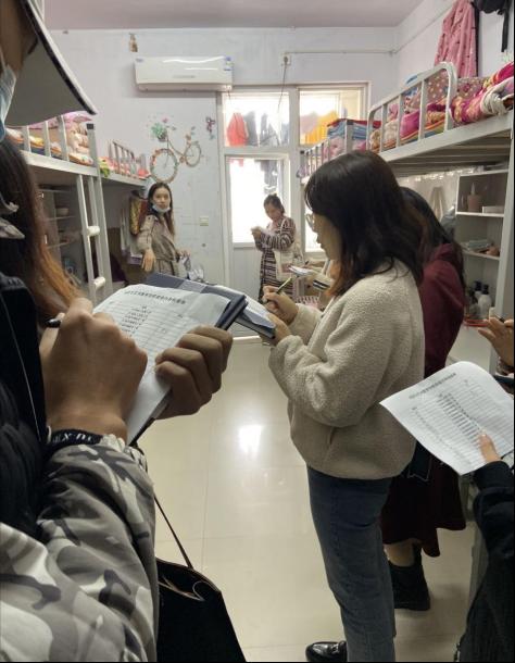 学院领导重点排查每个寝室大功率电器的使用情况,对宿舍物品摆放,地面卫生和宿舍安全用电进行详细检查,根据检查情况对每个宿舍进行了评分。