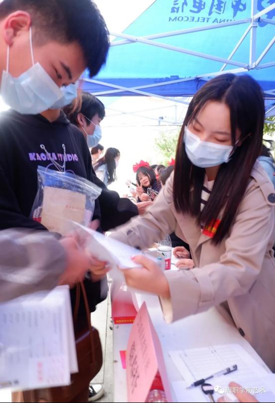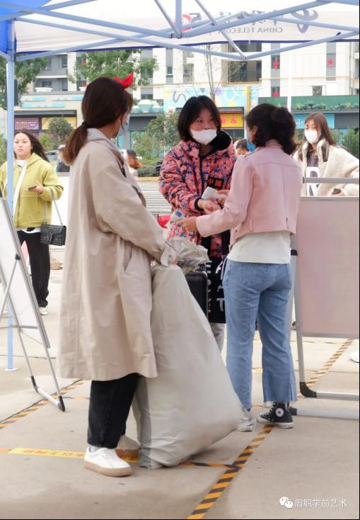 在校内志愿者们耐心解答着刚刚踏入大学校园的萌新学弟学妹们的“三千问”,新生第一天要办的手续也有专门志愿者帮忙办理。学院还特意为每位同学带上象征吉祥的小风车、蝴蝶结发卡,并设计了网红拍照地,彰显了艺术特色,创新了活动形式。