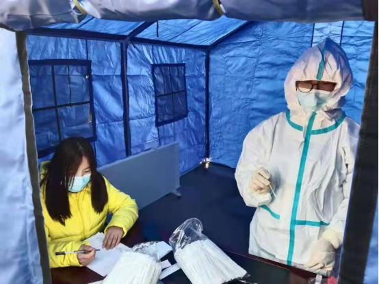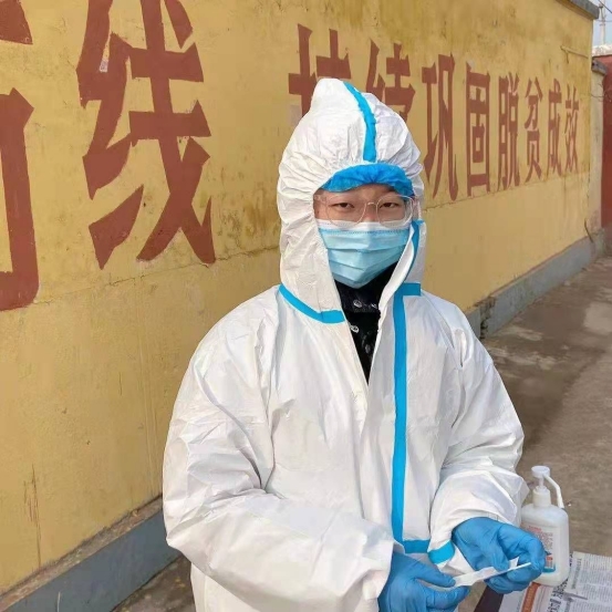 20级学前教育六班的徐露莹同学,家住河南省许昌市鄢陵县马坊镇徐坡村,在面对这突然再次暴发的疫情,她义不容辞的参加了当地的疫情防控志愿者服务活动中。她主要负责在村庄入口卡点处站岗值班,帮助医护人员给当地的老人做核酸检测登记信息,进行挨家挨户统计现在家人口等工作。