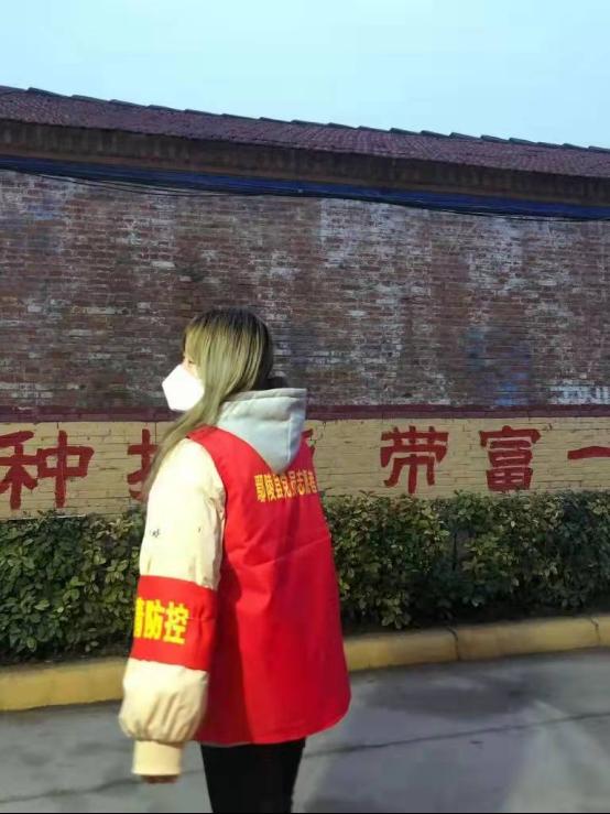 20级视觉传播一班的李梦奇同学,家住河南省新蔡县余店镇韩店村,在疫情来临之际,她主动报名参加当地的疫情防控志愿者服务活动。她主要负责疫情防控排查,登记因疫情未返乡人员信息名单、村内人员疫苗接种情况和调查返乡人员居家隔离的情况,宣传防疫知识等工作。