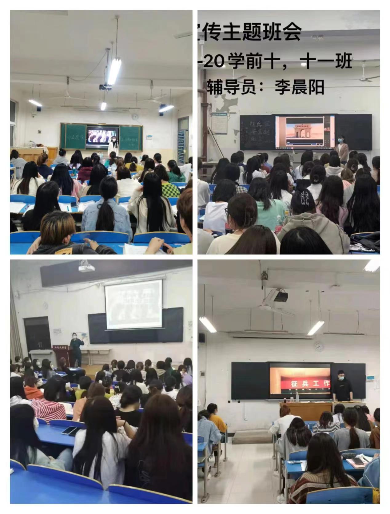 此次主题教育活动以班级为单位组织同学们观看军事题材电影和2022年征兵公益宣传片《火热军营精彩人生》。辅导员老师向同学们普及征兵程序和大学生入伍优惠政策,并向大家介绍了我校历年来入伍情况,鼓励适龄青年携笔从戎,报效祖国。