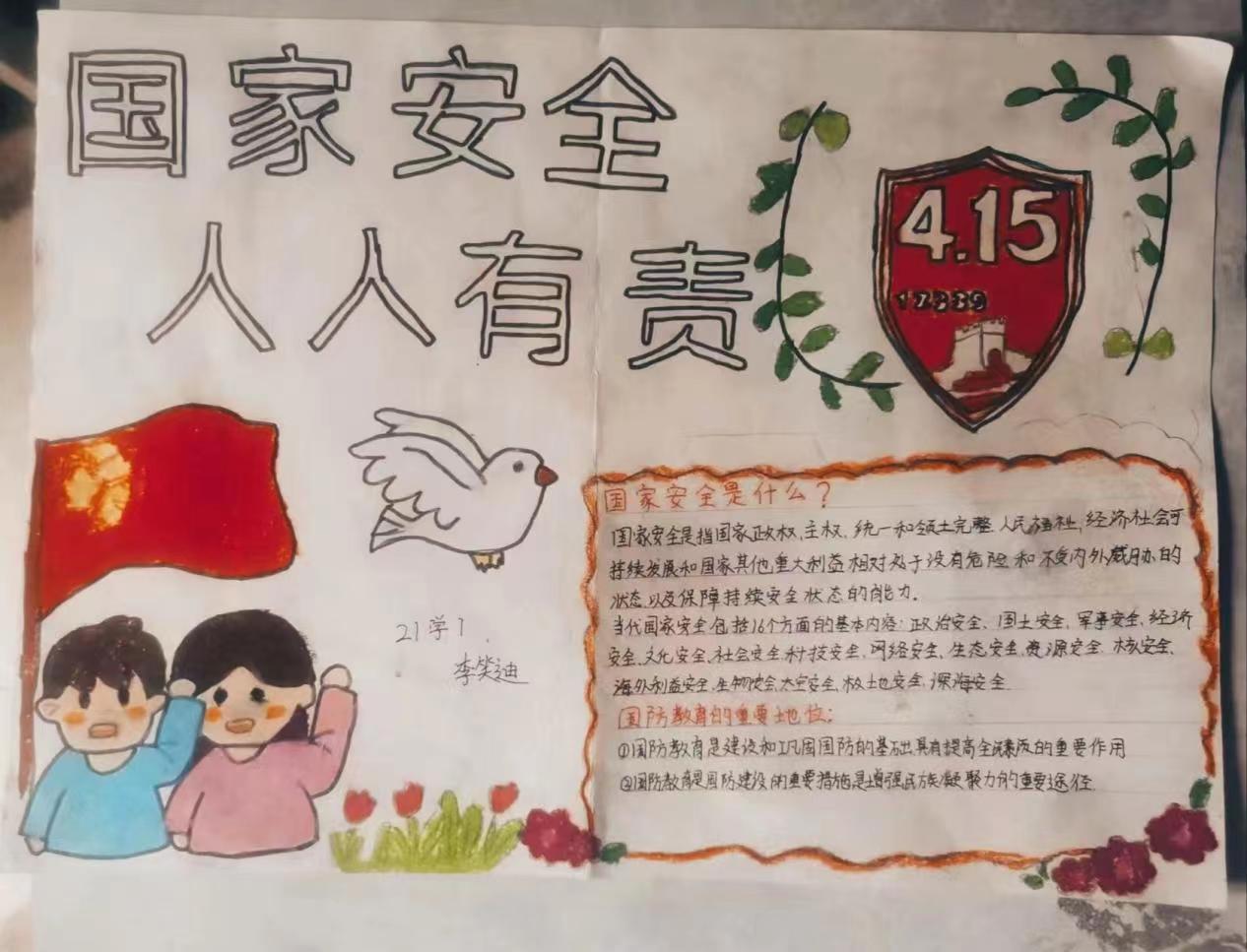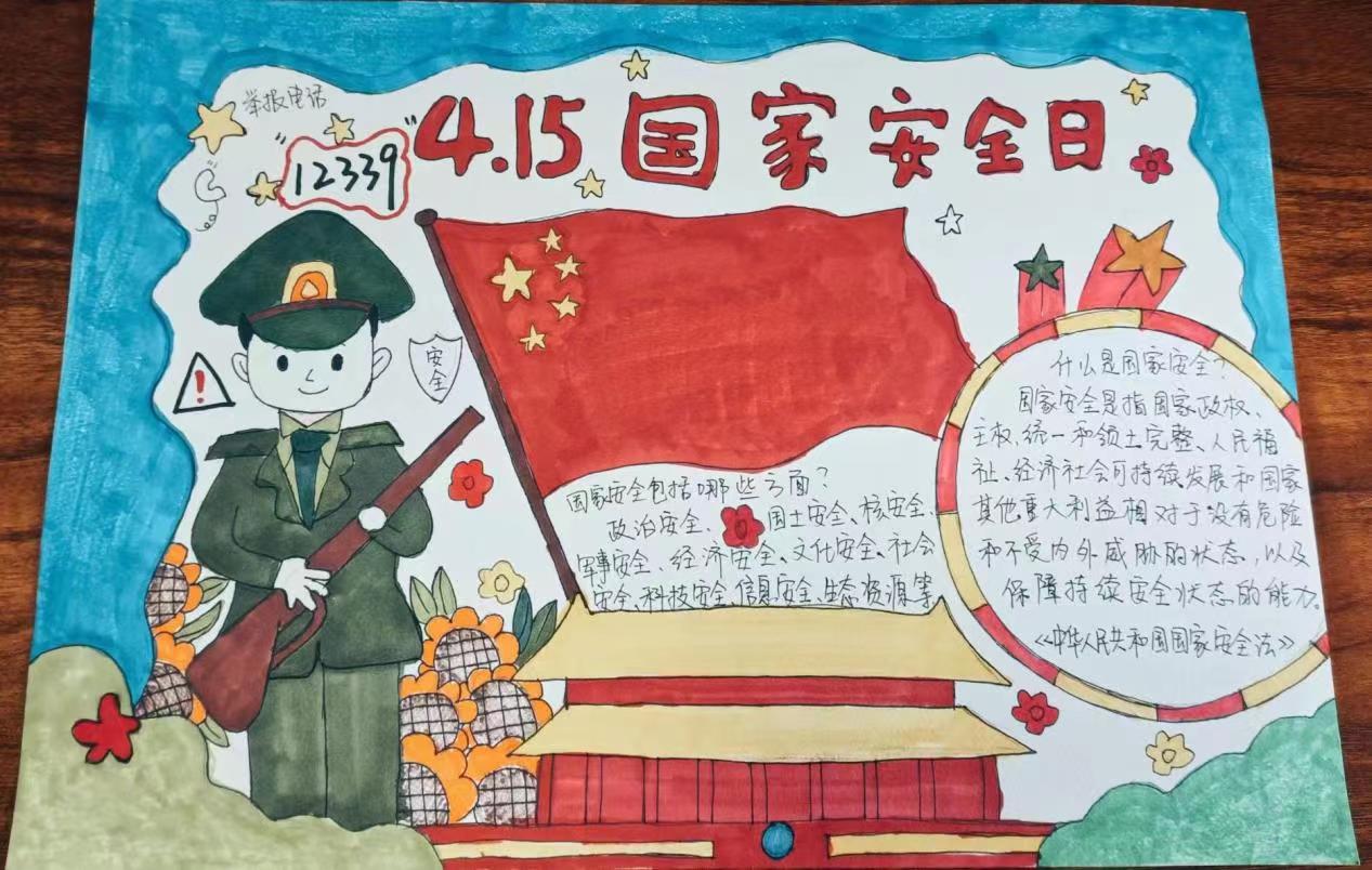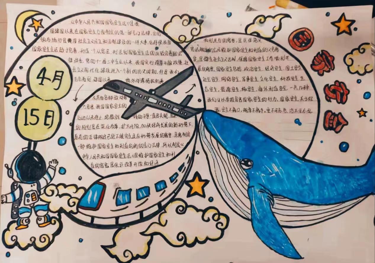 活动中,同学们积极参与。借助手中的画笔绘制了一幅幅主题鲜明、思想积极、内容丰富、设计新颖的手抄报作品,普及国家安全知识,宣传国家安全理念。