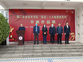 接着,副校长李明臣在致辞中表示:百年大党,风华正茂,亿万人民自信自强。值此万众期盼,普天同庆的的历史时刻,我代表校党委向共同举办画展的师生表示衷心的感谢,此次书画展以艺术的形式表达对党的衷心拥护和对国家的强烈热爱。更要树牢“四个意识”,坚定“四个自信”,做到“两个维护”,积极为实现“第二个百年”奋斗目标和中华民族伟大复兴贡献智慧和力量。