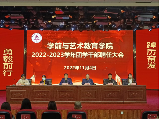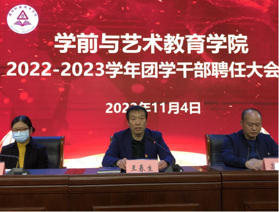 学习贯彻党的二十大精神,凝心聚力奋进新征程。11月4日下午2点30分,ballBET贝博BB艾弗森ballBET贝博BB艾弗森在一楼演播厅举行2022-2023学年团学干部聘任大会。党总支书记王春生、院长高岐奎、副院长耿润、副院长崔彤彤、学管办主任郑玉凡、团总支书记刘馨馨,21、22级辅导员及团学干部参加此次大会。此次大会由副院长崔彤彤主持。