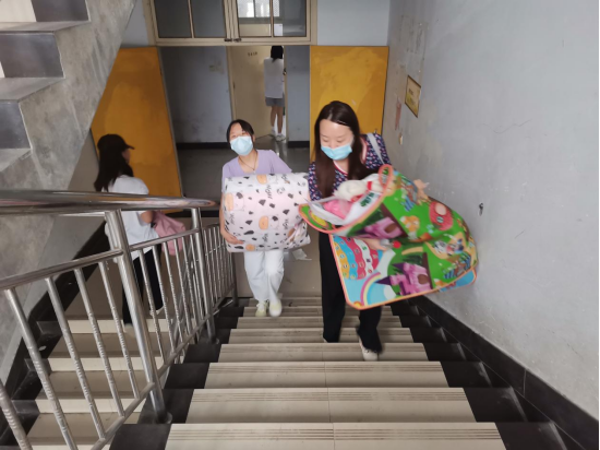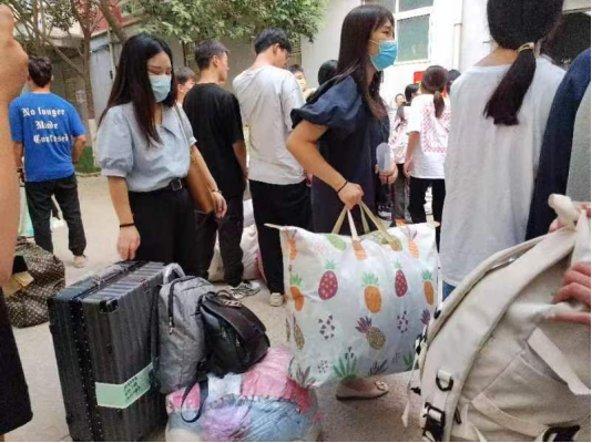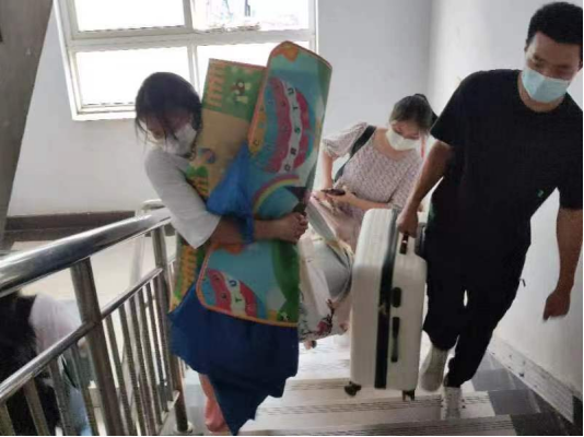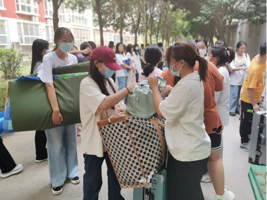志愿者们在现场老师的指挥下,积极配合工作,他们秉承“一对一微笑服务”的理念,协助需要调整宿舍的新生将一袋又一袋的行李、一箱又一箱的衣物和物品,搬运到新的宿舍。