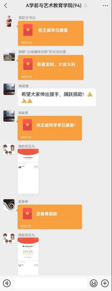 病魔无情,人间有爱。在得知王威同学的情况后,学院领导、师生时刻牵挂着他的病情,在党总支书记王春生的号召下,团总支向贝博官网全体师生发出向患病学生奉献爱心的捐助倡议书。