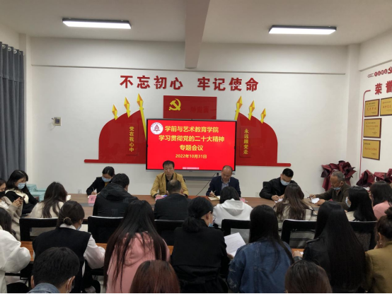会议集中学习了党的二十大报告的主要内容,重点学习党的二十大报告关于教育的论述。会议强调,要全面深入学习领会党的二十大报告的丰富内涵和精神实质。要深刻认识和把握过去五年工作和新时代十年伟大成就的重大意义,深刻领会“两个确立”的决定性意义,坚决做到“两个维护”;要深刻认识和把握习近平新时代中国特色社会主义思想开辟了马克思主义中国化时代化新境界,更加自觉坚持好、运用好贯穿其中的立场观点方法;要深刻认识和把握中国式现代化为人类社会发展提供了中国智慧,更加积极履职尽责,努力为全面建设社会主义现代化国家贡献力量;要深刻认识和把握自我革命是我们党更加成熟的重要标志,持之以恒推进党员干部全面从严治党;要深刻认识和把握统筹内涵建设是实现办学高质量发展的重要保障,要以高质量党建推动学院高质量发展。