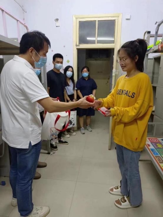 ballBET贝博BB艾弗森领导班子及新生辅导员来到校外酒店看望返校新生并进行了亲切慰问,让同学感受到了来自学院的温暖,学生父母对此表示感谢。随后,来到宿舍对提前到校新生进行慰问并送上学院精心定制的中秋大礼包,里面有象征着团圆的中秋月饼和希望同学们平安到校的爱心苹果,希望能让新同学感受到学院浓浓的爱与关怀。