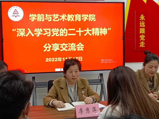 李秀萍指出,党的二十大报告中奋斗目标愈发清晰,为今后的工作指明了方向。作为教育工作者,要做青年朋友的知心人、青年工作的热心人、青年群众的引路人,要通过多种形式认真学、反复学,真正做到学深悟透、融会贯通,切实统一思想和行动。她强调,党的二十大报告对青年提出殷切期望,充分体现了党对青年一代的关心与厚望,我们要勉励广大青年坚定不移听党话、跟党走,我们要引导青年学生做有理想、敢担当、能吃苦、肯奋斗的时代好青年,把理想追求融入党和国家事业,力求不负韶华、不负时代、不负人民。