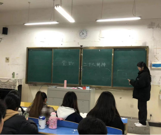 班会上,同学们学党史、讲党史,阐述自己对二十大精神的理解和心得,深入学习二十大召开的意义和对国家的影响,歌颂党的伟大成就,以实际行动贯彻落实党的二十大精神。
