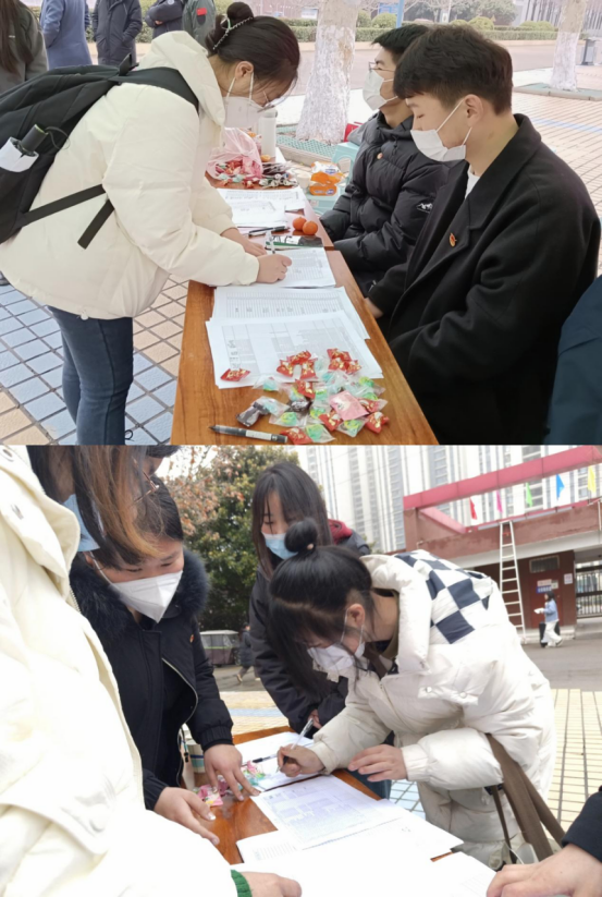 学院领导与返校学生亲切交流,关切询问同学们的思想动态、学习规划等,并为返校的学生每人送上一个甜甜的糖块,分享一杯热茶,寓意甜蜜而又热烈的校园生活开始了。