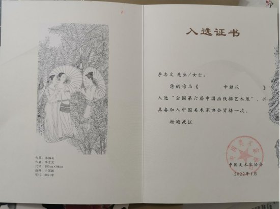 1.1月8日,李志文老师的美术作品《幸福花》荣获全国第六届中国画线描艺术展优秀奖。
