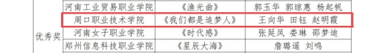56.11月25日,贝博官网田钰老师指导的《唱支山歌给党听》《我们都是追梦人》舞蹈节目分别获河南省“舞动青春”视频接力活动三等奖和优秀奖。