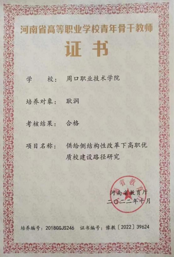 48.10月20日,耿润老师被认定为“河南省高等职业学校青年骨干教师”。