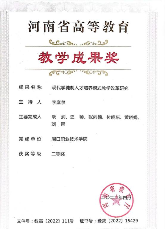 9.4月15日,耿润老师荣获河南省高等教育教学成果二等奖。