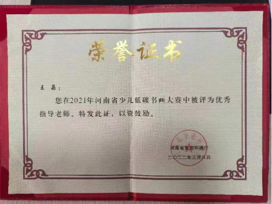 6.3月8日,王晶老师被评为2021年河南省少儿低碳书画大赛优秀指导老师。