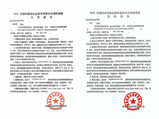 38.8月31日,高岐奎老师、王莉老师获批立项河南省社科联调研项目2项。