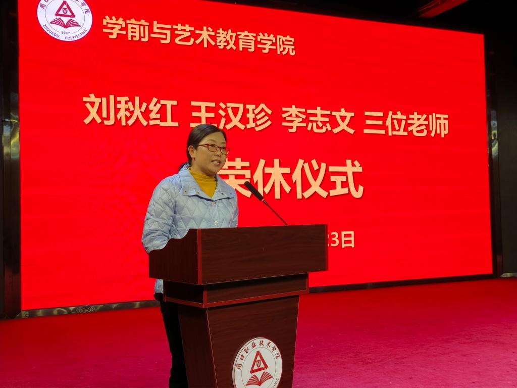 倾尽丹心育桃李,奉献韶华铸师魂。为向几十年如一日、倾尽心血教书育人的荣休教师表示最真诚的敬意和最美好的祝福,2023年2月23日下午,ballBET贝博BB艾弗森在一楼演播厅举行教师荣休仪式。党总支书记王春生、院长高岐奎带领全体班子成员参加仪式,共同祝福三位荣休教师刘秋红、王汉珍、李志文步入人生新阶段。副院长耿润主持本次仪式。