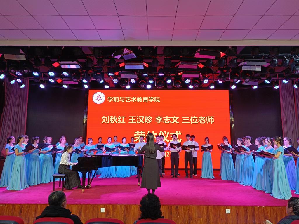 古枫吐艳,晚菊傲霜。学艺合唱团齐唱歌曲《飞来的花瓣》。每一个音符,都饱含着浓浓的师生情谊,传达了学生温馨、美好的感情。