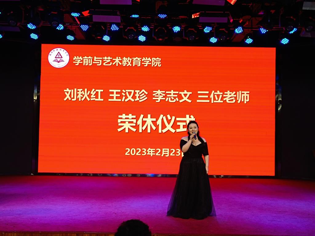 马颖超老师带来独唱《老师我想你》,优美的旋律给我们展现了一幅情景交融的音像画卷,深情的歌声中表达了对三位荣休教师的无比崇敬与感激之情。