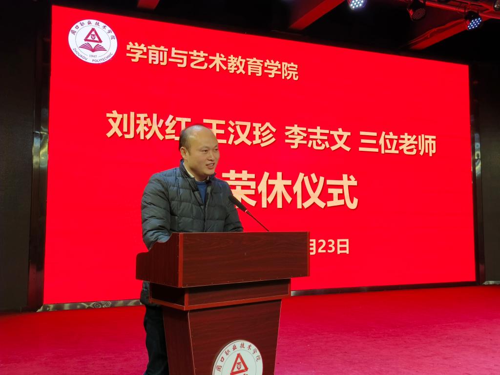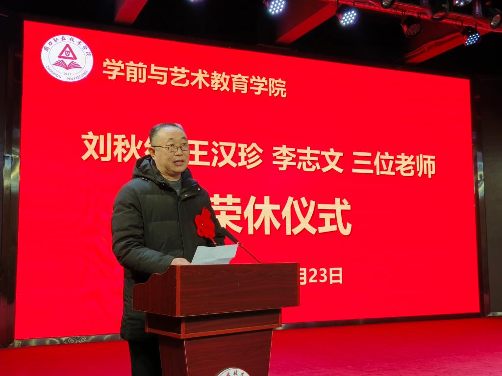 回首执教生涯,笑看桃李芬芳。荣休教师代表李志文发表感言,非常感谢学校安排的隆重荣休仪式,让他们感受到了家庭般的温暖和幸福。他深情回顾了自己从教三四十年的教书岁月,言谈中饱含对教育事业的忠诚与热爱。他表示,退休不退志,离岗不离情。最后表达了对学院未来的美好祝福。