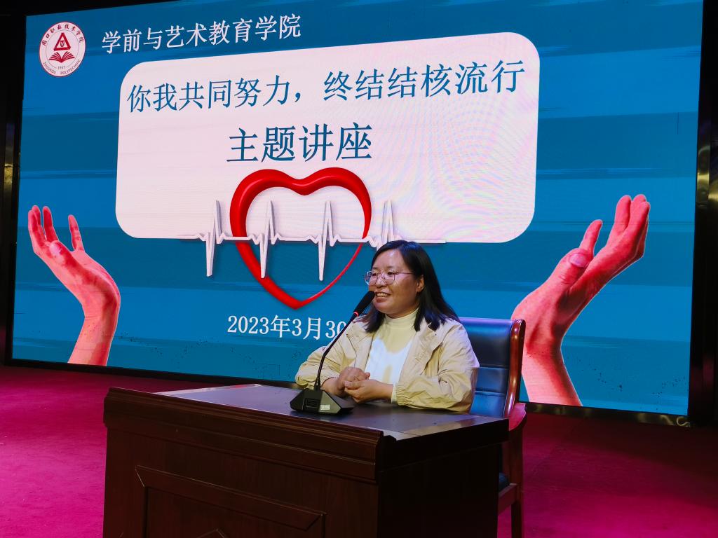为深入贯彻党的二十大精神,践行“人民至上,生命至上”的理念,呼吁广大师生重视结核病的防控,切实做好校园传染病预防工作,营造健康和谐的校园环境,3月30日,ballBET贝博BB艾弗森在一楼演播厅开展预防结核病主题讲座宣传教育系列活动。讲座由学管办主任郑玉凡主讲,21、22级学生代表到场聆听。