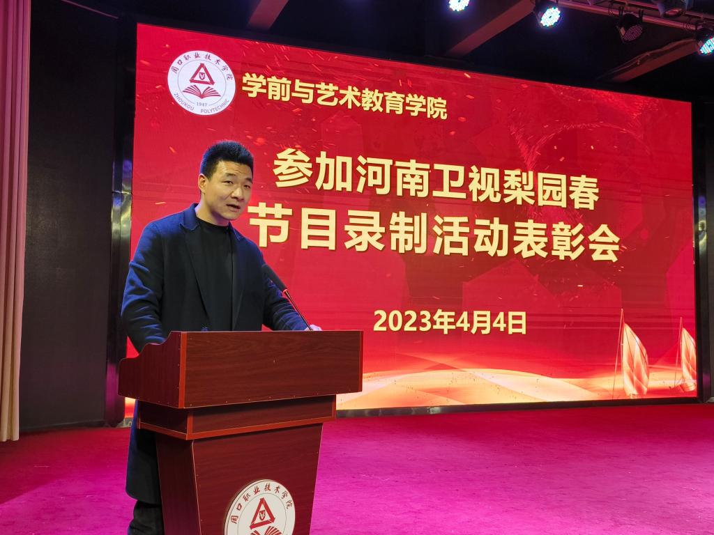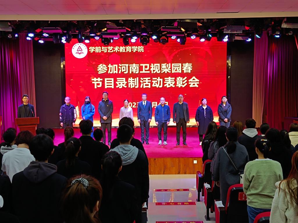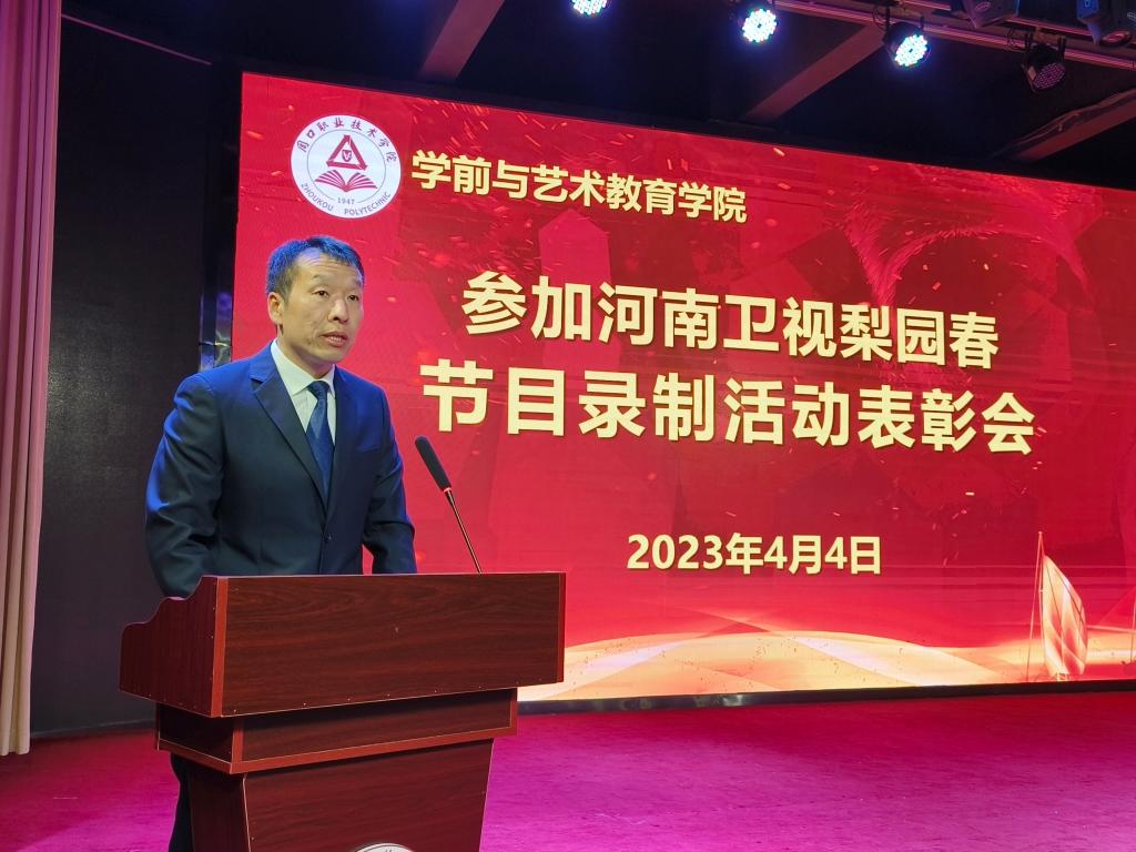 为鼓励先进,激励他人,4月4日下午,ballBET贝博BB艾弗森在艺术演播厅隆重召开参加河南卫视梨园春节目录制活动表彰会。学院党总支书记王春生、院长高岐奎带领学院班子成员,党委宣传部宣传科长,院团总支书记及相关指导教师出席会议,各班班委、学生代表参加会议。会议由副院长崔彤彤主持。