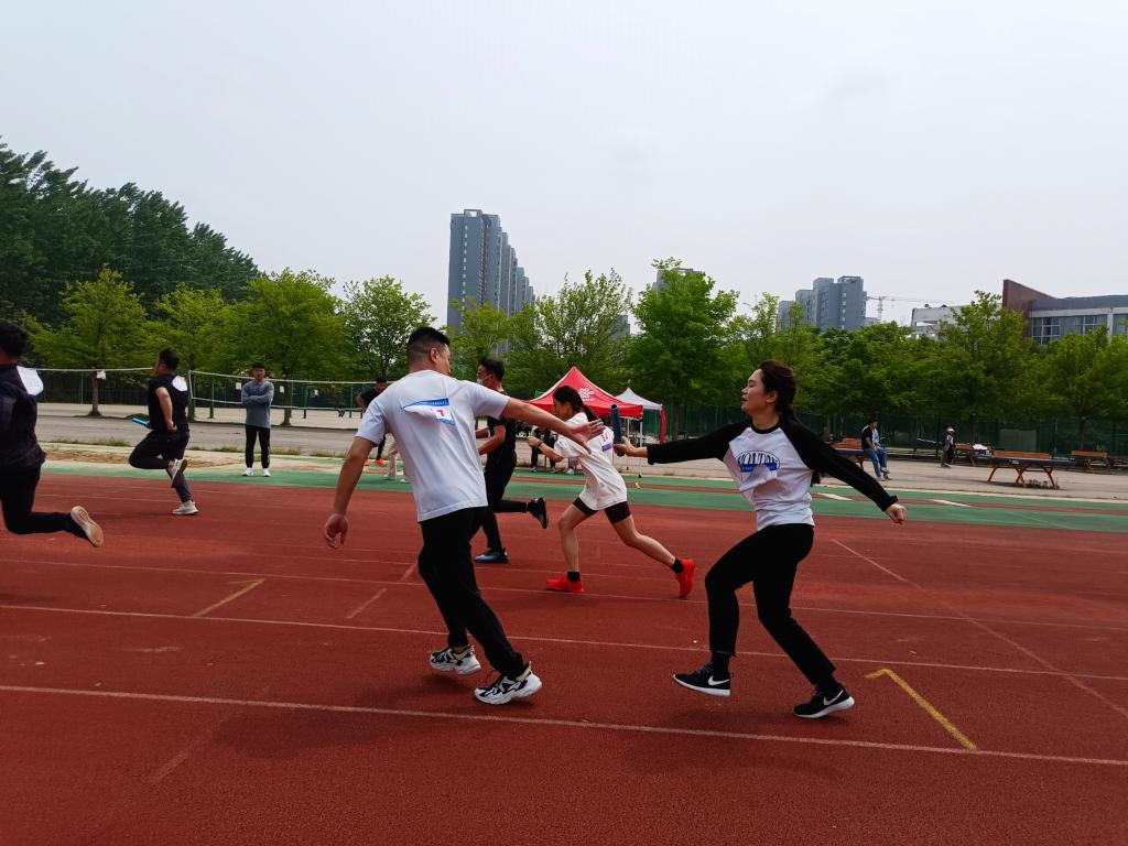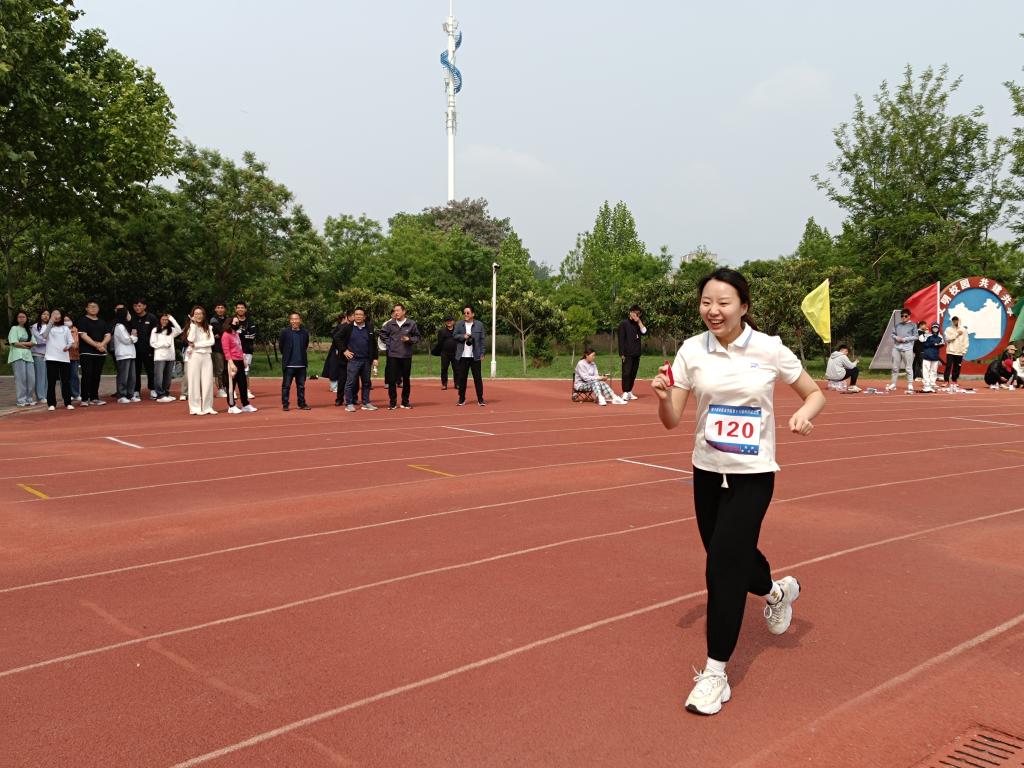 赛场上,学院党总支书记王春生等4名参赛队员如离弦之箭,向着终点飞奔。冲刺接棒,再冲刺再接棒,小小接力棒,棒棒有力量!经过激烈的角逐,最终获得教职工组4×100米接力赛项目第二名的好成绩。