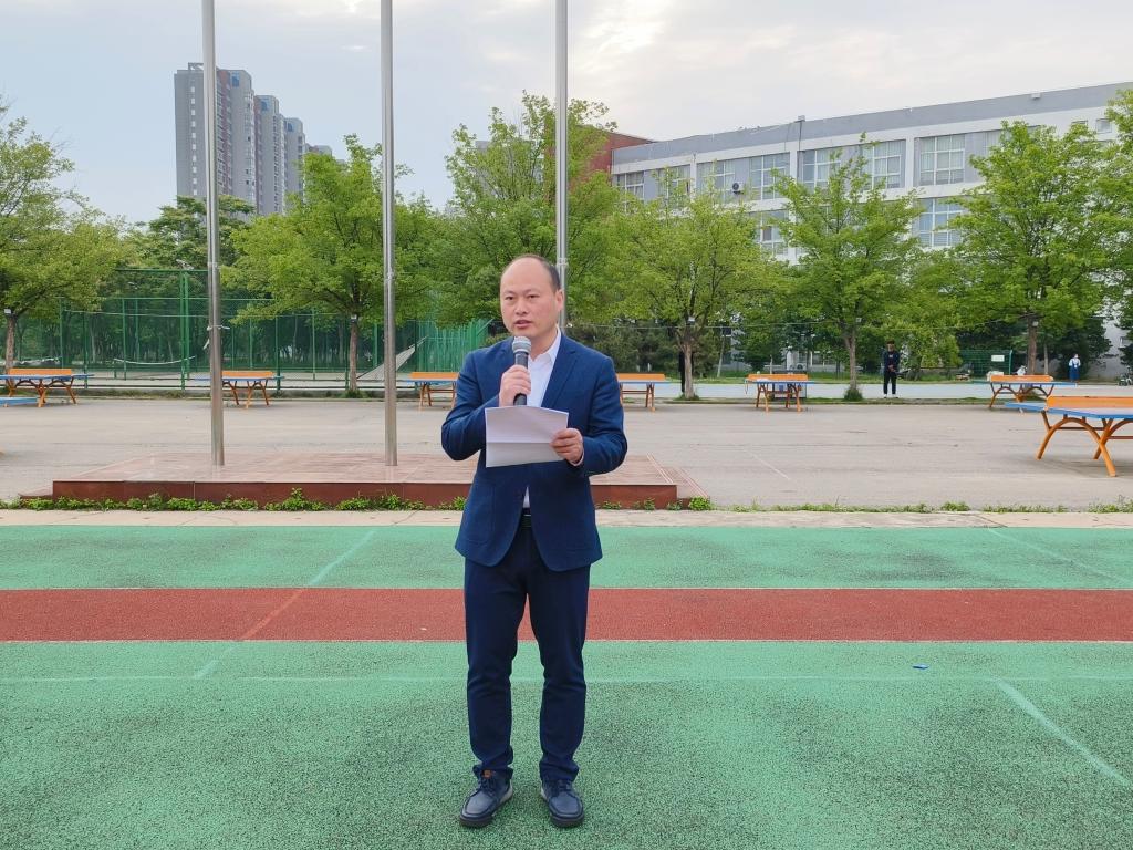 院长高岐奎做国旗下讲话,他要求同学们作为新时代的新青年,更应该铭记历史,不忘初心,做好历史的接力棒,以奋斗的姿态致敬最美的青春,让青春在百年圆梦的路上绽放绚丽之花。