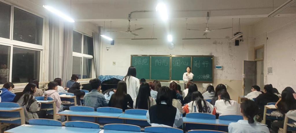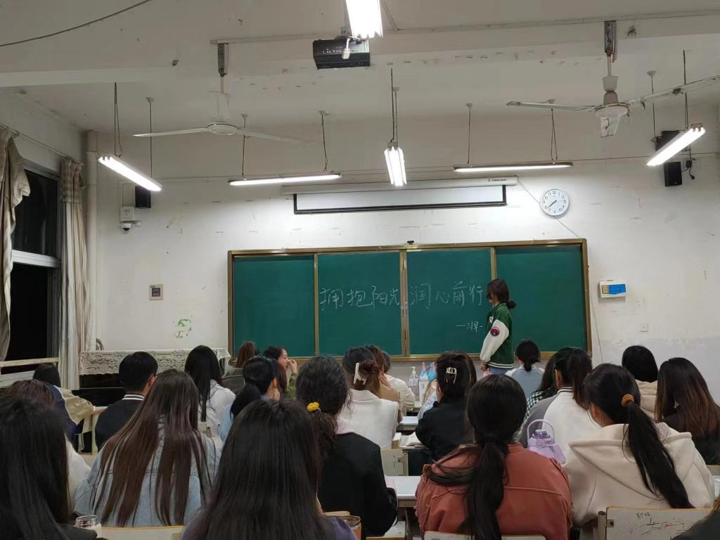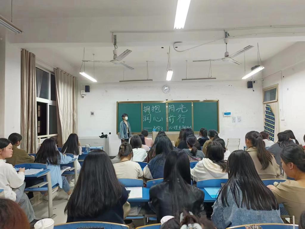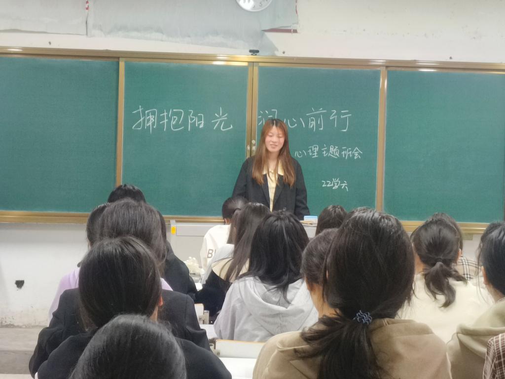 各班在教室开展心理健康教育主题班会。辅导员及团支书向同学们讲述了挫折的含义、性质,以及挫折对个人生理和心理的影响等,强调心理健康可以促进大学生全面发展,并为同学们以后的大学生活指明了方向,鼓励同学们以积极的心态面对挫折,战胜挫折,希望同学们能够树立积极阳光的心态,勇于前行。