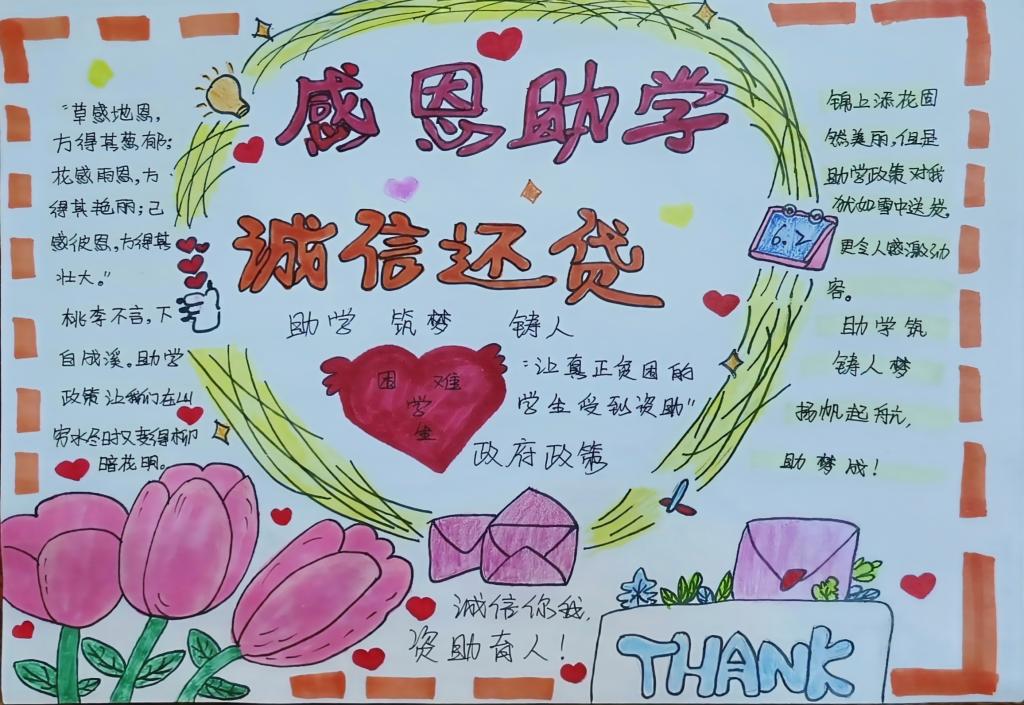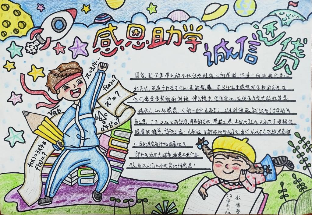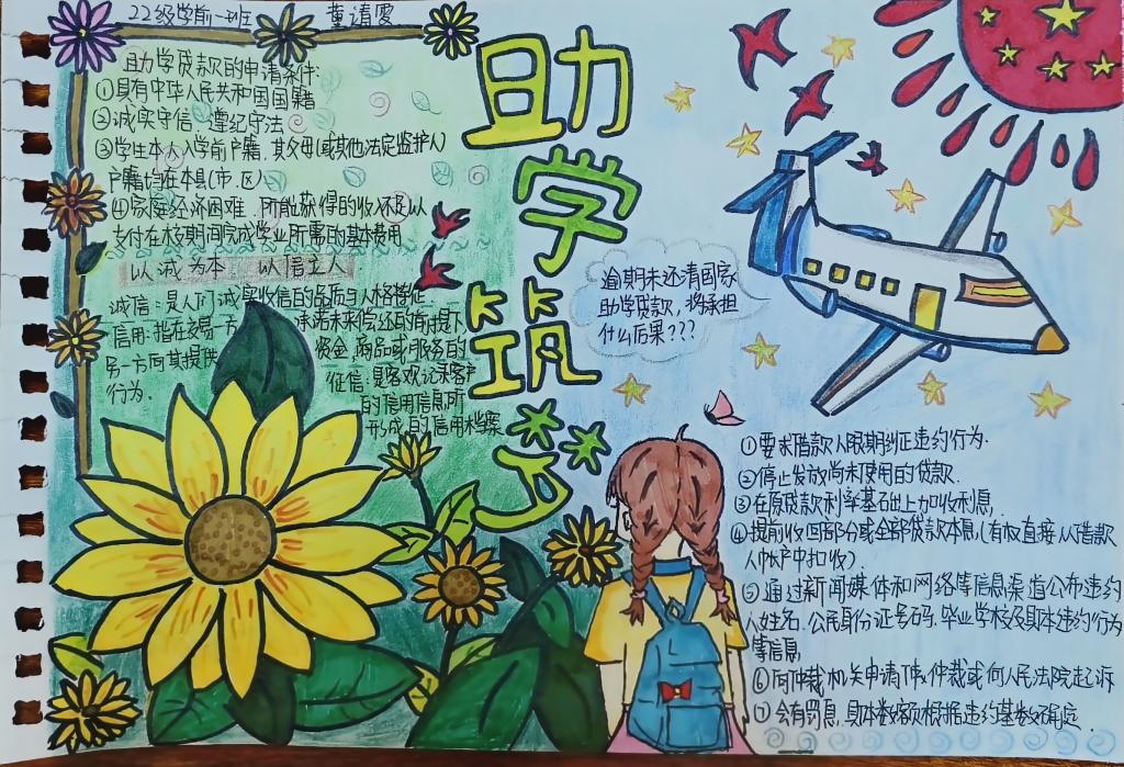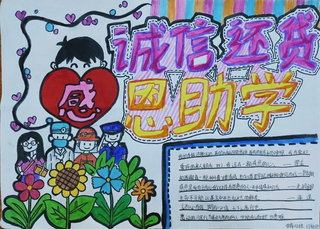 同学们结合所学、发挥特长,制作出一份份主题鲜明,图文并茂,内容积极向上的手抄报作品,同时也展现了同学们在国家资助政策的支持下,积极进取、自立自强、诚信感恩的精神面貌。