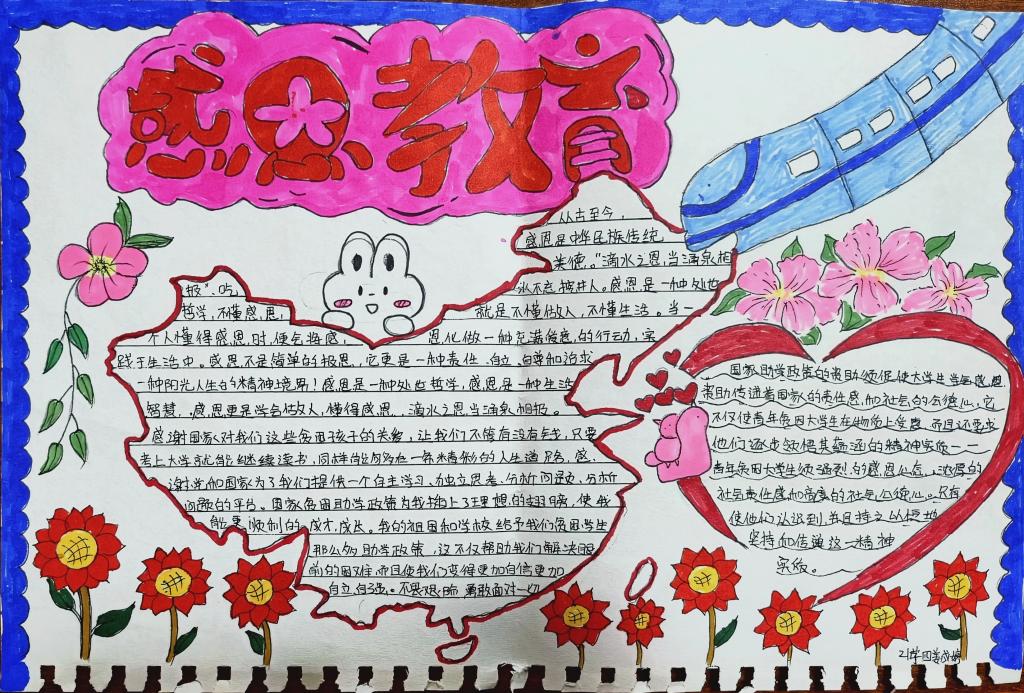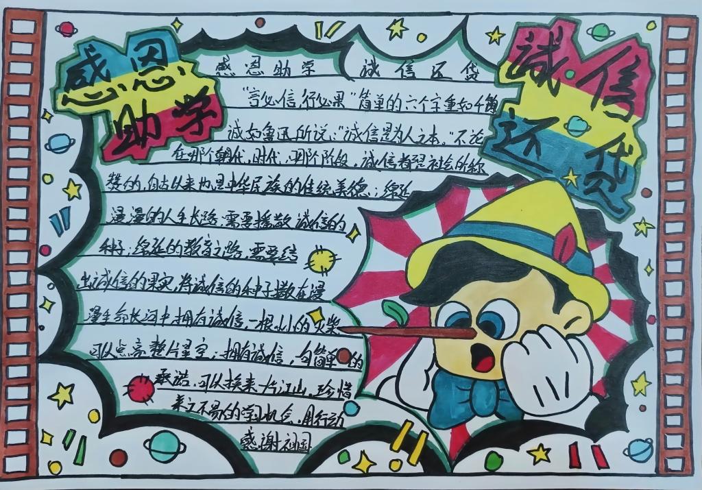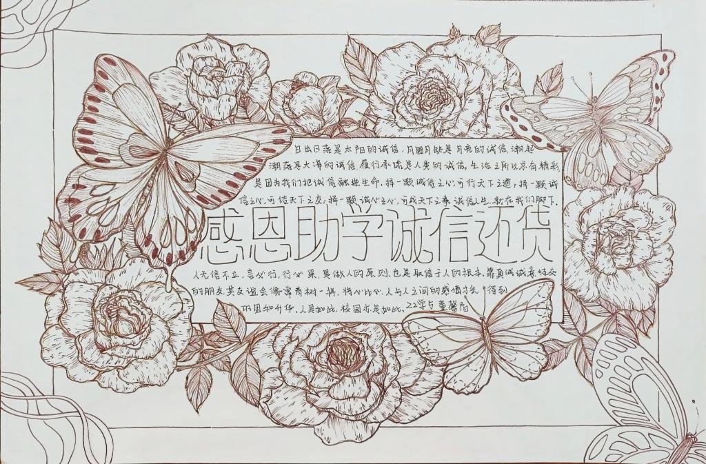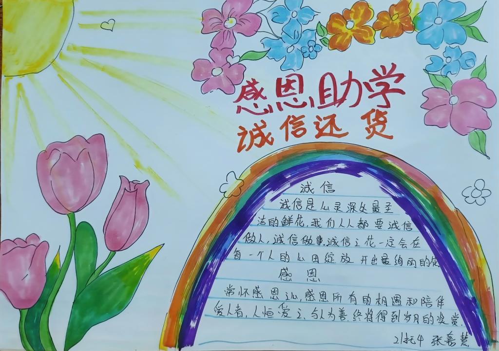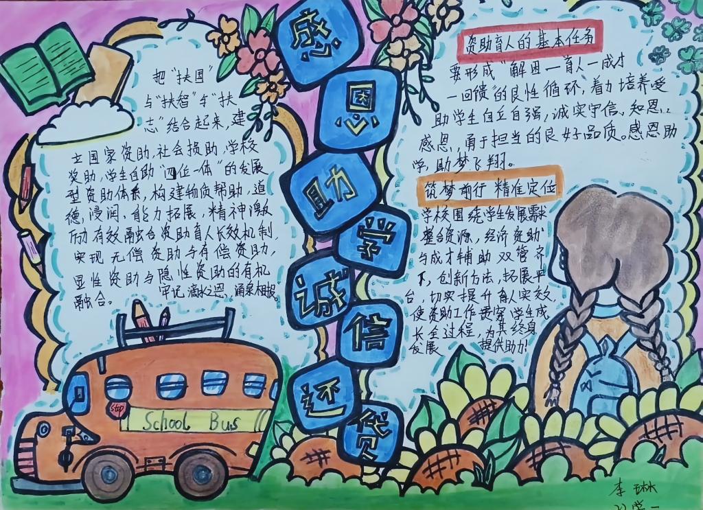 同学们结合所学、发挥特长,制作出一份份主题鲜明,图文并茂,内容积极向上的手抄报作品,同时也展现了同学们在国家资助政策的支持下,积极进取、自立自强、诚信感恩的精神面貌。