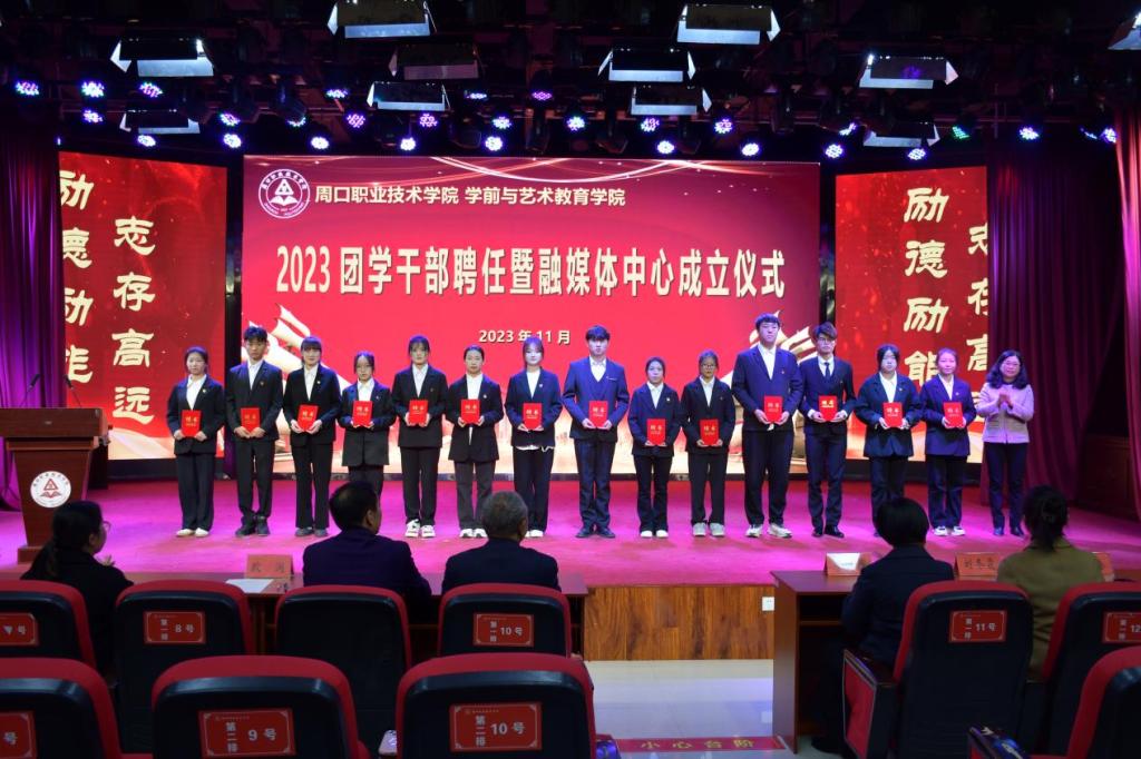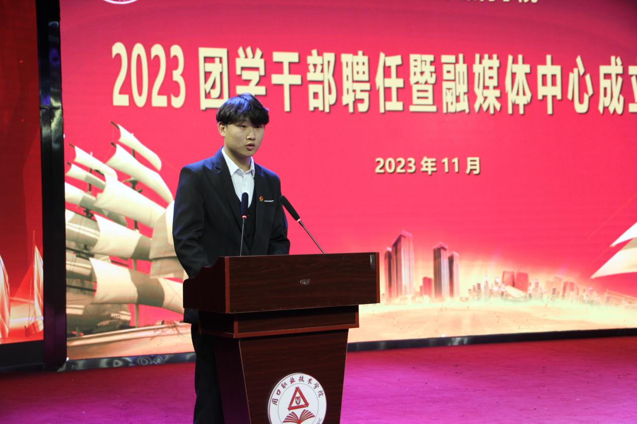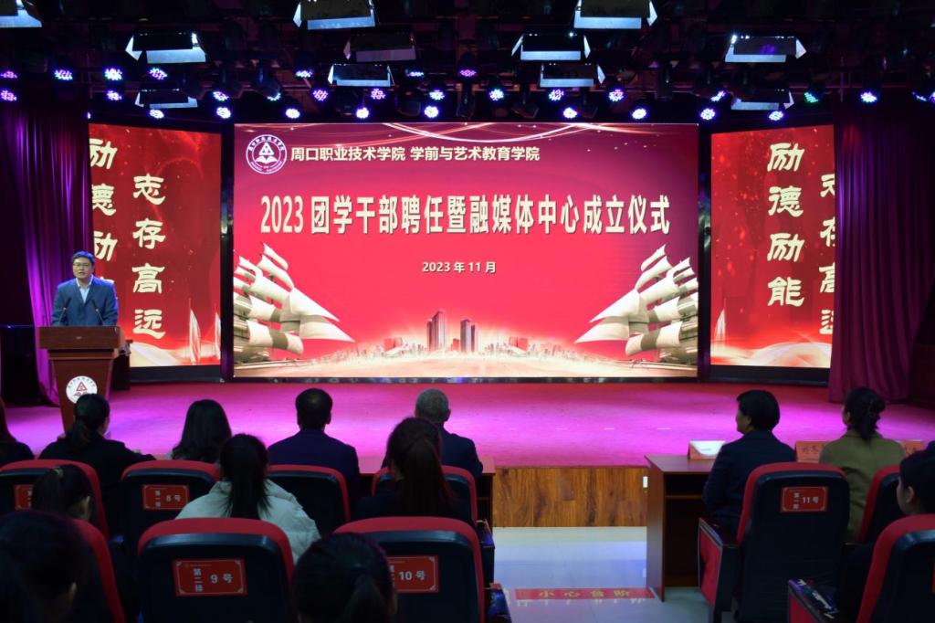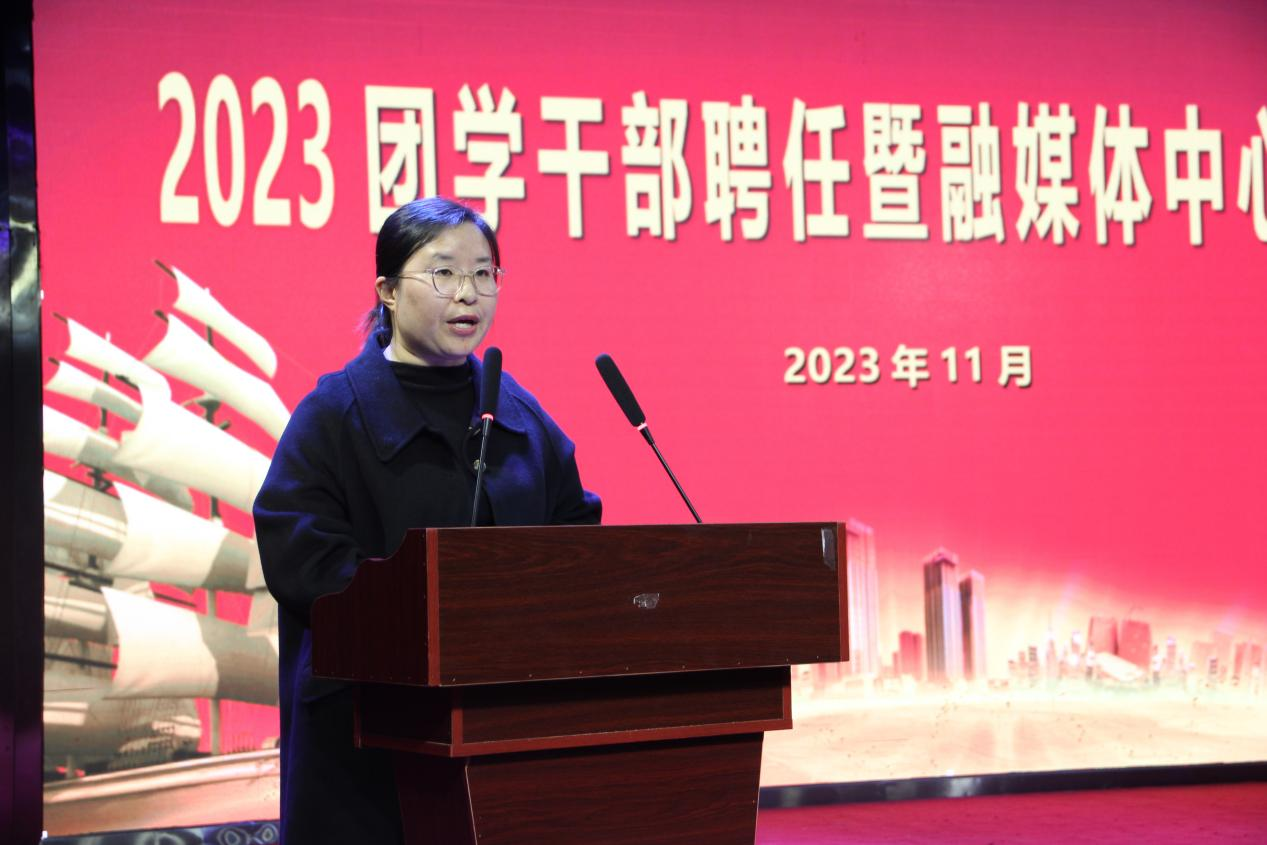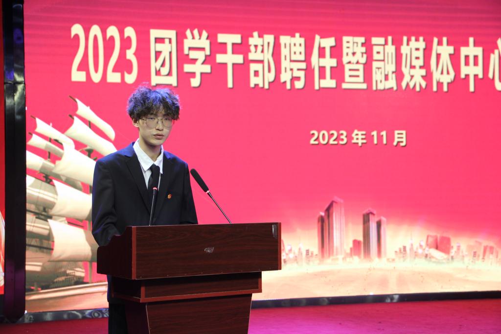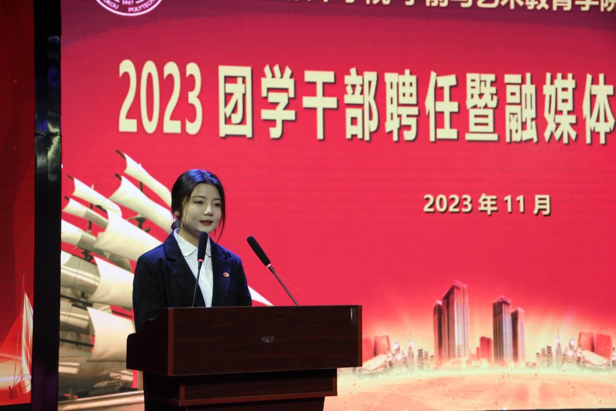 为贯彻落实习近平新时代中国特色社会主义思想,深入推进主题教育走深走实,充分发挥团学组织的先进性作用,完善学院团学组织机构建设,11月10日下午,ballBET贝博BB艾弗森在艺术演播厅举行2023团学干部聘任暨融媒体中心成立仪式。副校长于爱霞、宣传部部长万四新、学生处长刘冬霞、学院党总支书记王春生、院长高岐奎出席仪式,学院领导班子成员、辅导员老师、学生代表参加仪式。仪式由副院长杨晨主持。