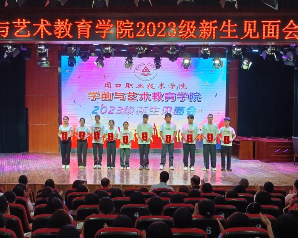 随后,为迎新工作优秀志愿者们颁发荣誉证书。为时两天的迎新工作中,志愿者身穿红、黄色的工作马甲,活跃在校园每个角落,为前来报到的新生提供帮助。十名新生亲手把证书放置到了学长学姐们的手上,并鞠躬感谢。希望同学们要向优秀的学长学姐们学习,做到心中有目标、肩上有责任。