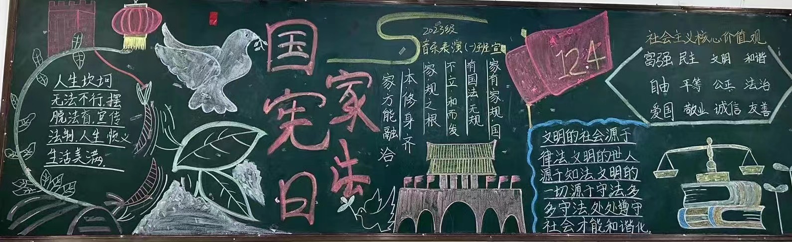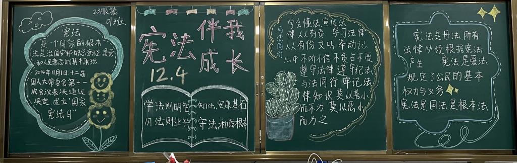各班围绕主题,精心策划、认真排版,设计出了各具特色的黑板报,在弘扬宪法的同时,也展现了班级风采。本次活动中涌现出许多主题突出、内容丰富、图文并茂的作品。下面一起来看看各班的黑板报作品吧!