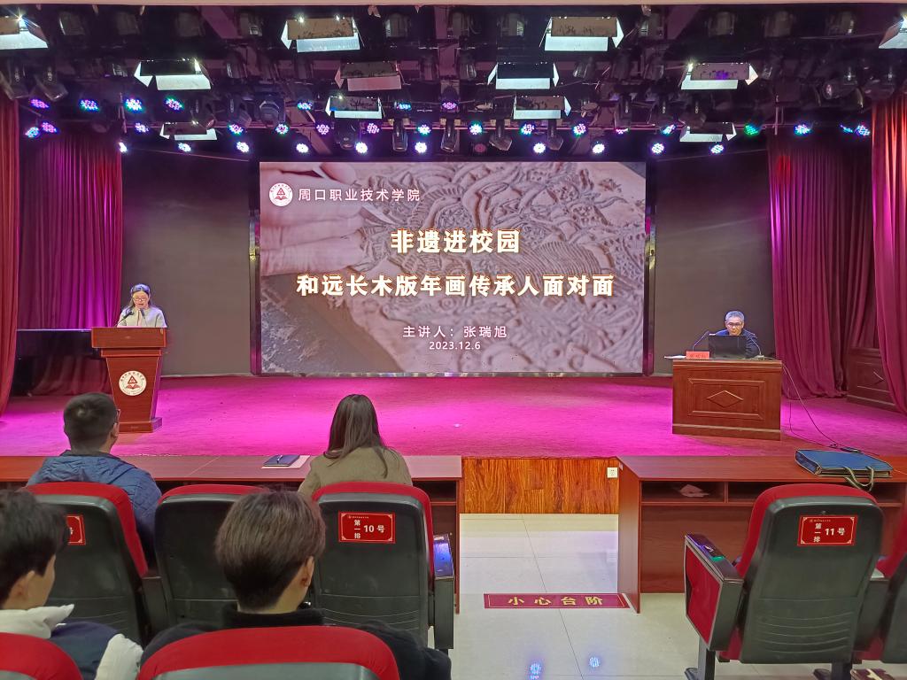 为了弘扬中华民族的优秀传统文化,提高大学生对保护非物质文化遗产的意识,增强文化自信,ballBET贝博BB艾弗森ballBET贝博BB艾弗森于12月6日下午邀请了周家口和远长木版年画传承人张瑞旭老师来校讲学。学院副院长杨晨、设计教研室主任董瑞、专业教师及设计专业的学生参加讲座,讲座由学院副院长耿润主持。